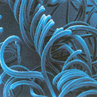 LYCRA?T400?纖維的高分辨率照片表明,每根單絲肉的兩種聚合物產生一種種狗骨狀的橫截面。 |